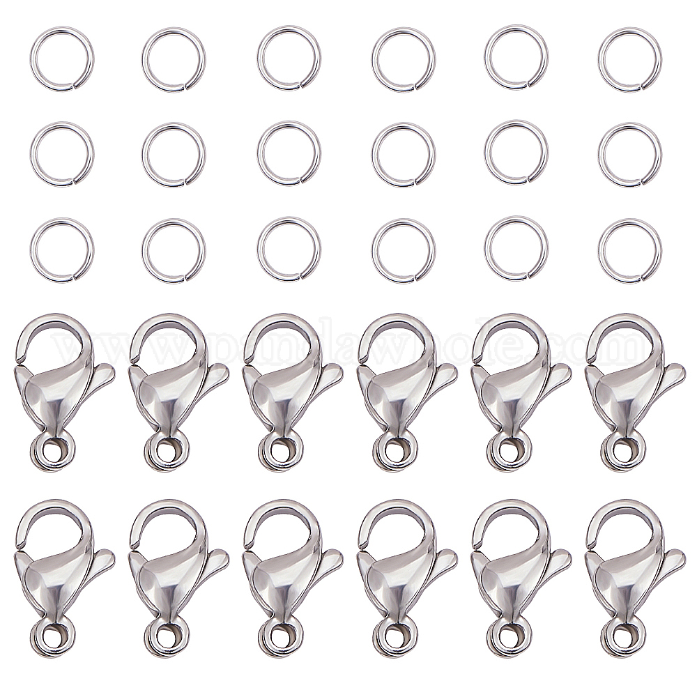 • Нержавеющая Сталь Цвет 304 нержавеющая сталь застежка когтя омара, с открытыми кольцами прыжковых, цвет нержавеющей стали, 6.8x5.2x1.1 см