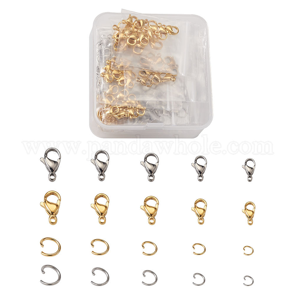 304 нержавеющая сталь застежка когтя омара, ручная полировка, с открытыми кольцами прыжковых