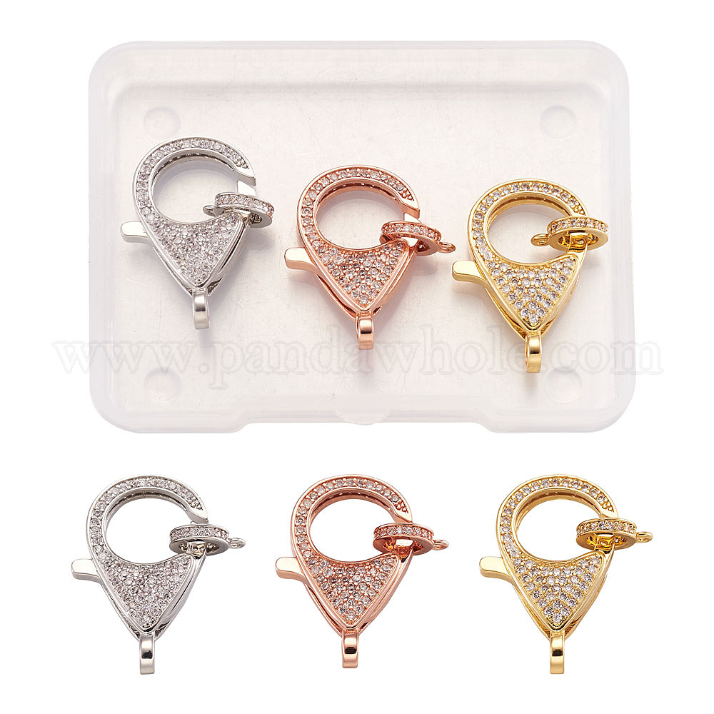 латунные застежки-клешни из кубического циркония с микропаве: 26.5x17.5x5.5 мм, отверстие: 3мм; трубчатые поручни: 9.5x7.5x2мм, отверстие : 1.2 мм, 3 цветов, 1set / цвет, 3 устанавливает;