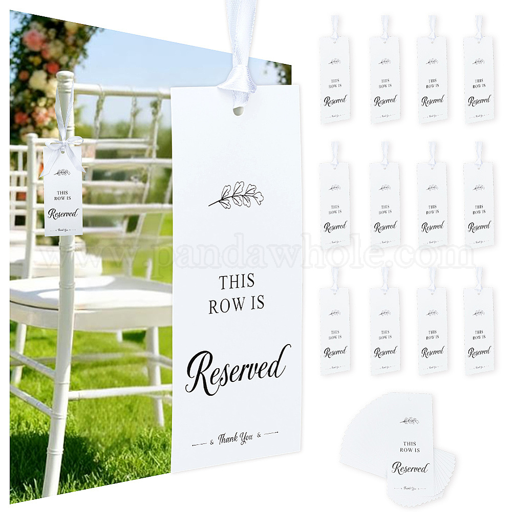 Подвесная бумажная табличка с надписью «Зарезервированное место»: ширина около 60 мм., 140 мм длиной, толщиной 0.3 мм , отверстие : 5 мм, 30 шт; лента: 10 мм шириной, 50 ярды.