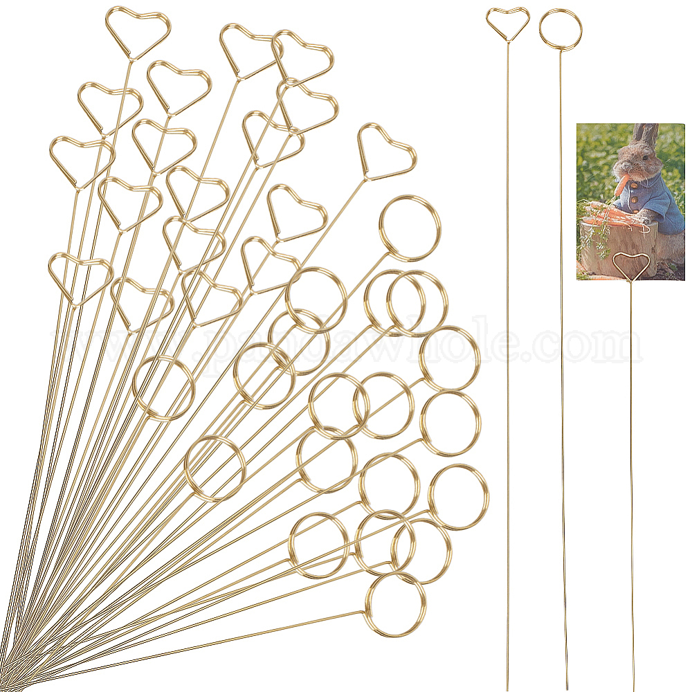 • Золотой 40шт. 2 стили: кольцо и зажим для визитных карточек из стальной проволоки в форме сердца, настольная подставка для заметок, для свадьбы, дня рождения украшения, золотые, 305x20x2 мм, 20 шт / стиль