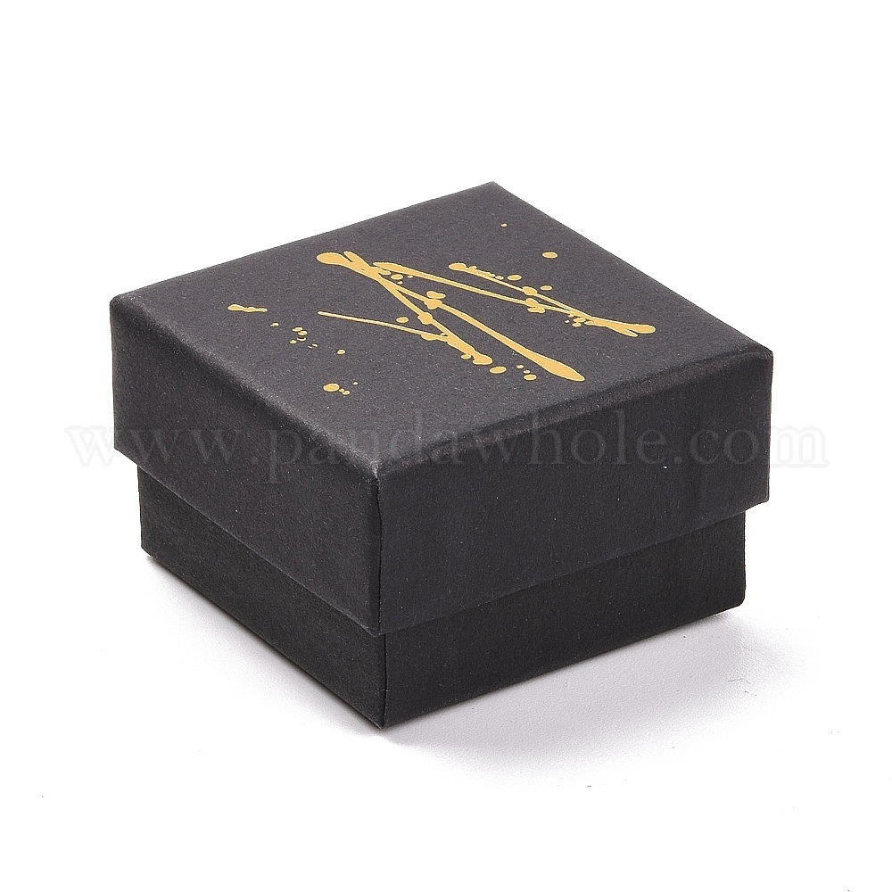 • Черный Квадратные коробки для упаковки ювелирных изделий из картона горячего тиснения, с губкой внутри, для колец, маленькие часы, , Серьги, , чёрные, 5.1x5.1x3.3 см