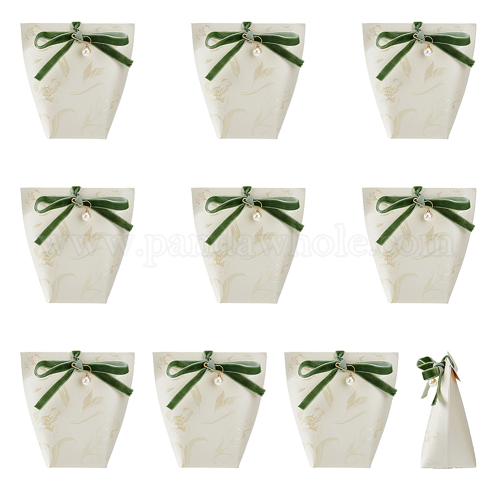 Картонные коробки для конфет с цветочным принтом, подарочный футляр для свадебных конфет с лентой, клипса и бусина