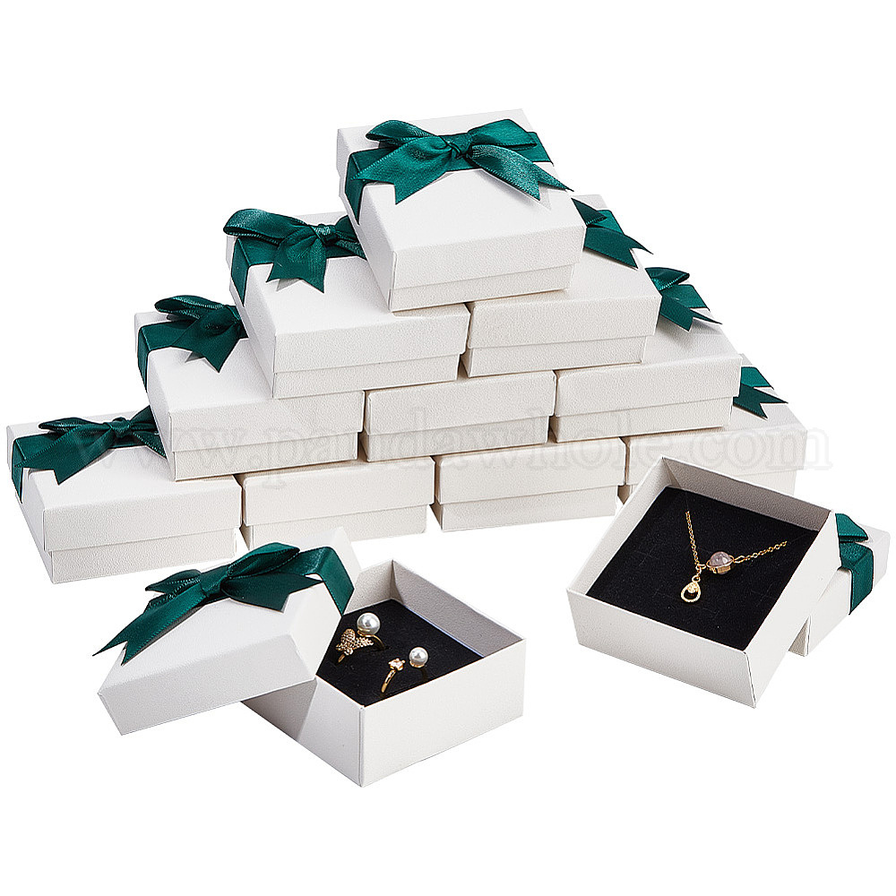 12 Квадратная картонная коробка для набора ювелирных изделий, с крышкой из полиэстера с бантом, футляр для хранения украшений с бархатной губкой внутри, для ожерелья, Серьги, Кольца
