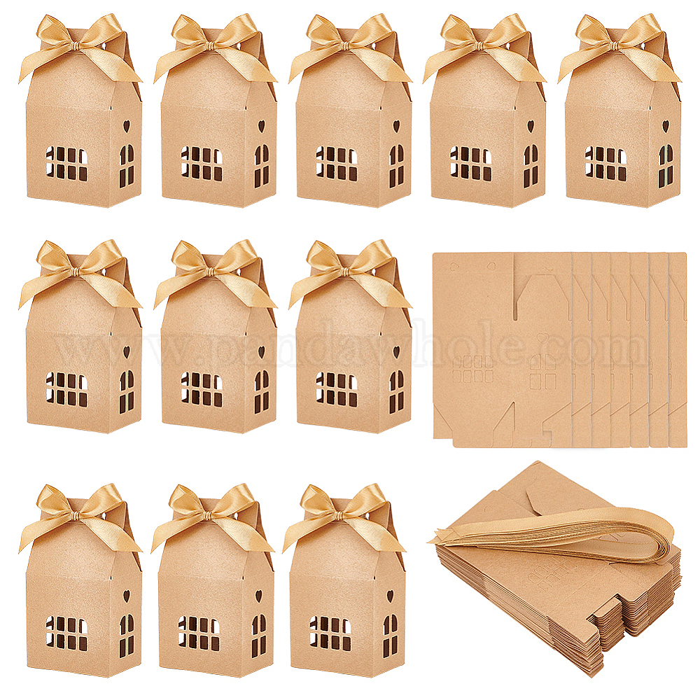 Картонные коробки для конфет в форме полого домика, подарочный футляр для конфет с полиэстеровой лентой
