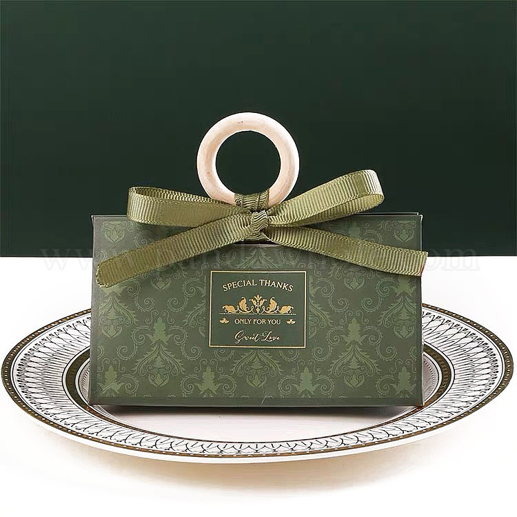 Коробки для упаковки подарков из бумаги и конфет в европейском стиле с лентой и деревянной ручкой, складные ящики для хранения на свадьбу