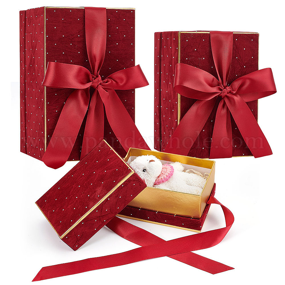 • Темно-Красный 3шт. 3 стили подарочных коробок из картона с бархатной крышкой и лентой, прямоугольные, темно-красный, 14~25x9~16.2x7.2~14 см, 1 шт / стиль