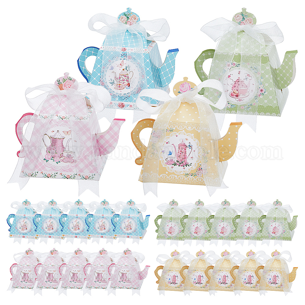 4шт. 4цвета винтажные бумажные коробки для конфет в форме чайника с цветочным рисунком и лентой