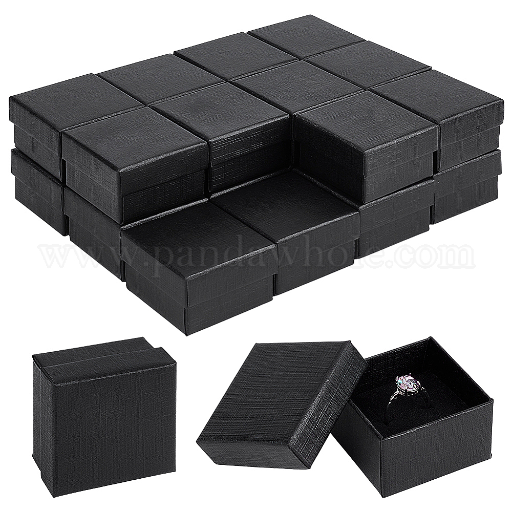 • Черный Квадратные картонные коробки для хранения ювелирных изделий, с губкой внутри, серьги кольца ожерелья браслеты подарки упаковка, чёрные, 5.25x5.25x3.1 см