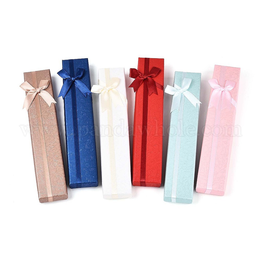 Картонные коробки для хранения ювелирных изделий и ожерелий, с лентой-бантом снаружи и белой губкой внутри, прямоугольные