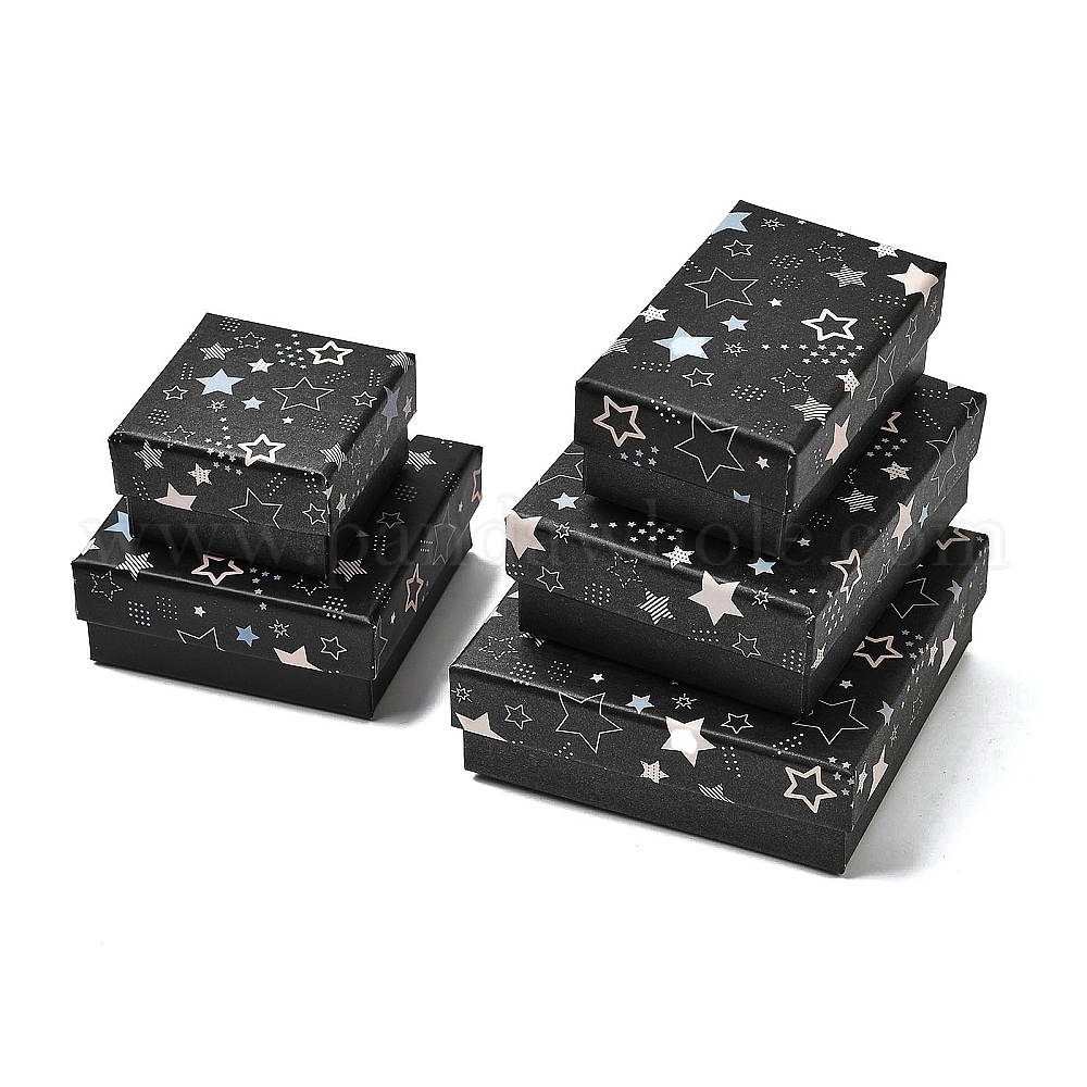 Картонные подарочные коробки для ювелирных изделий с принтом в виде звезд, с губкой внутри, для колец, серьги и подвески, квадрат / прямоугольник (039ZAQ)