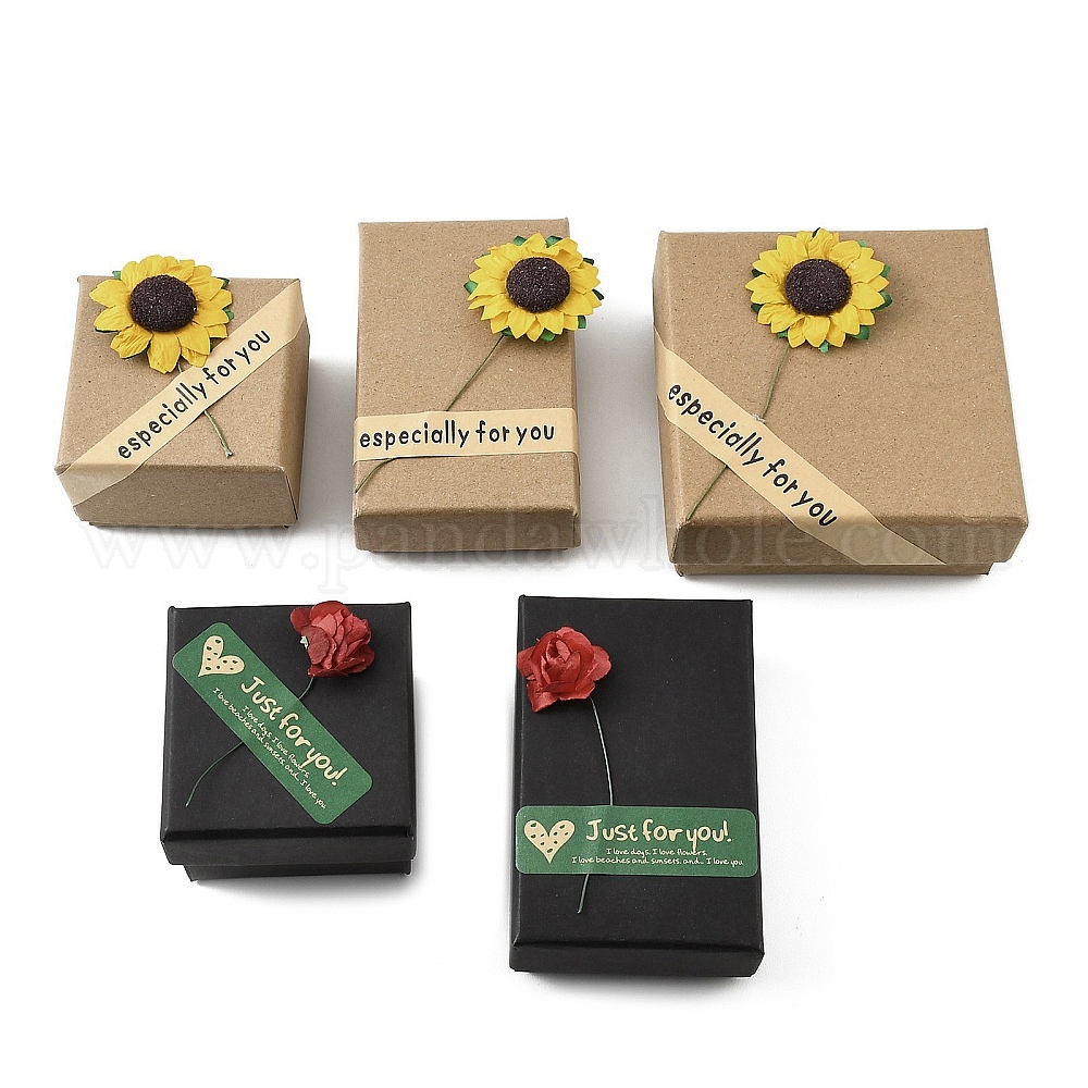 Подарочные коробки из крафт-бумаги с искусственными цветами снаружи., прямоугольник квадрат