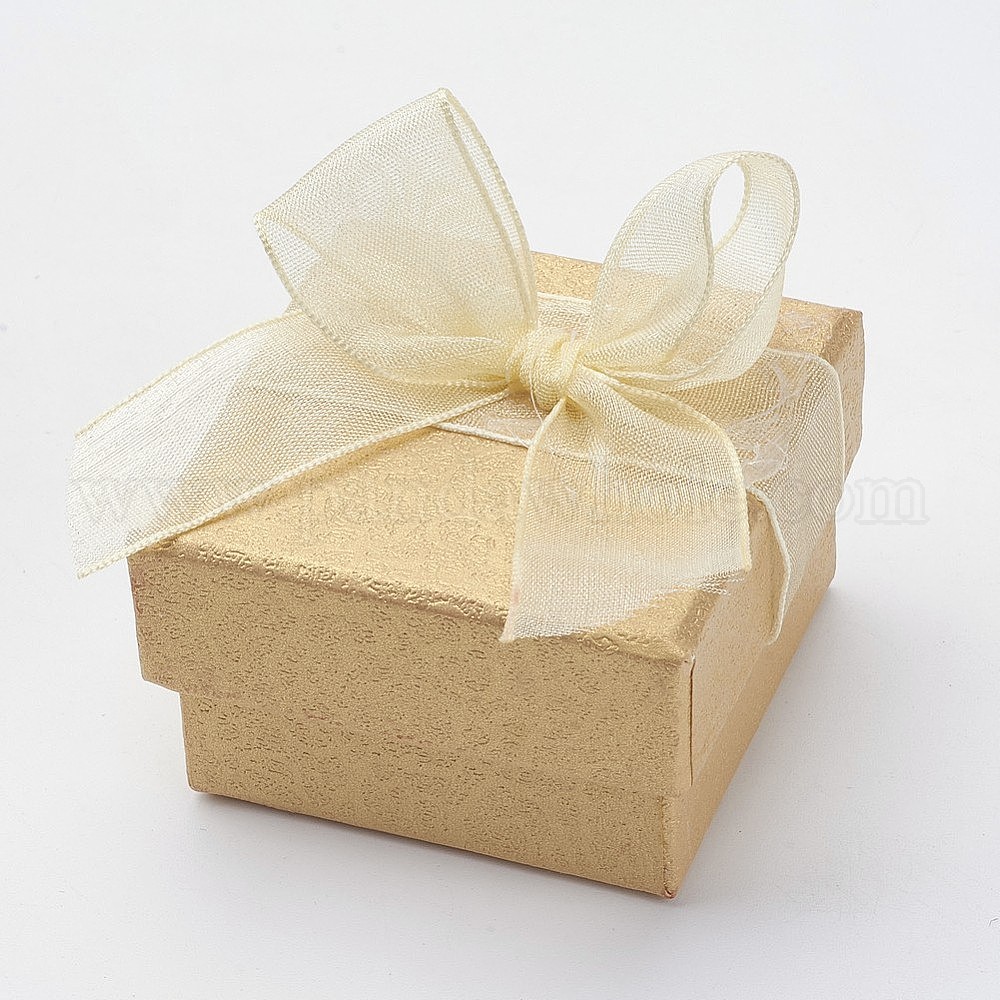 Картонные коробки кольцо, с органзы бантом, квадратный