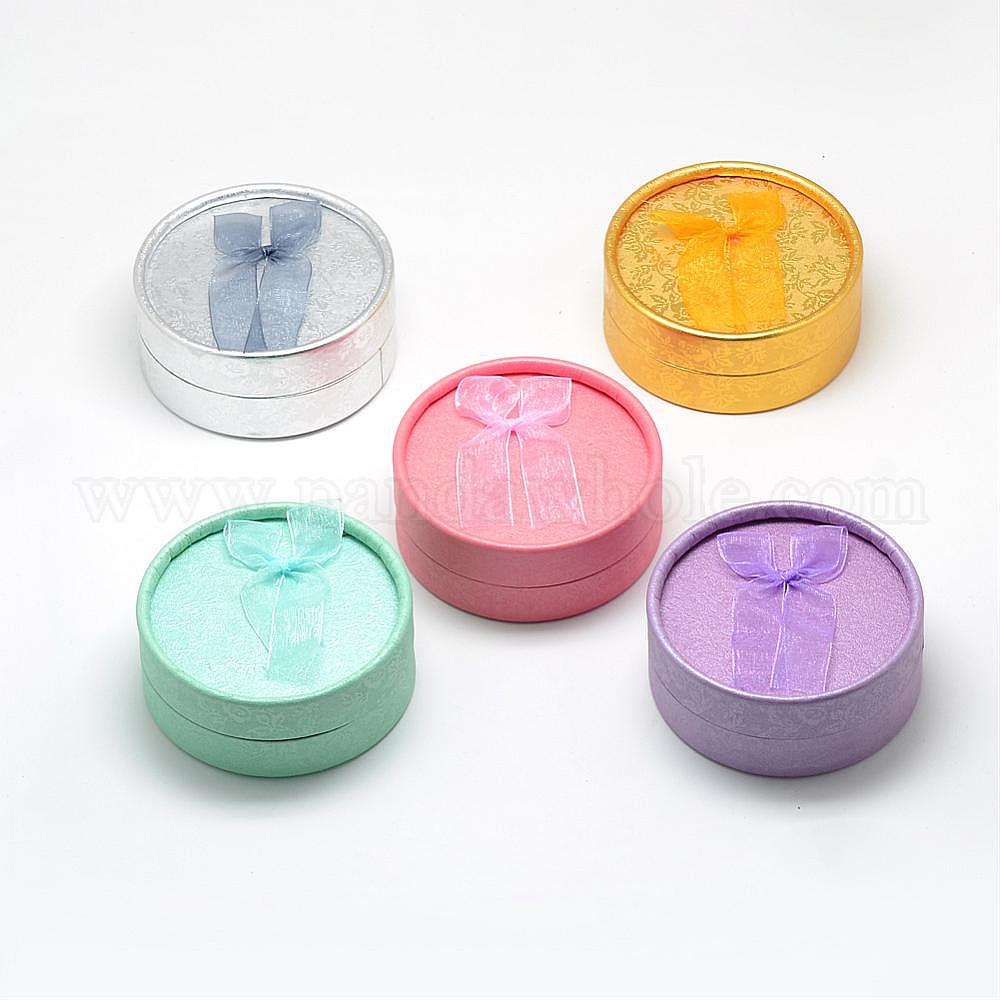 Картонная шкатулка для ювелирных изделий, Для ожерелья и кольца, плоско-круглые (00MX5G)