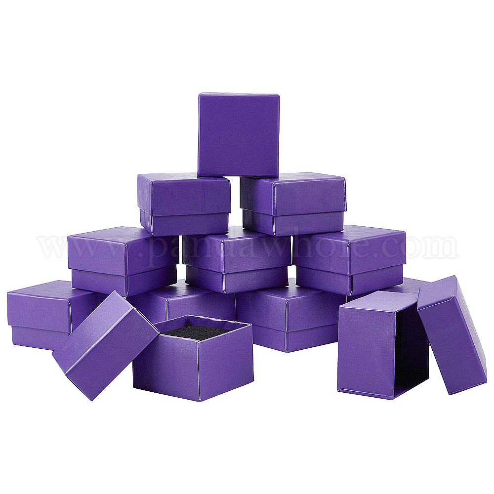 • Фиолетовый Картонные коробки для сережек, с черной губкой, для ювелирной подарочной упаковки, фиолетовые, 5x5x3.4 см