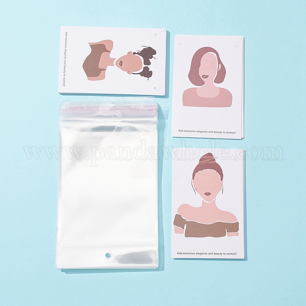 20 картонные карточки для ювелирных изделий, для подвешивания сережек и ожерелий, прямоугольные, Женская модель, с 30 целлофановыми пакетами OPP
