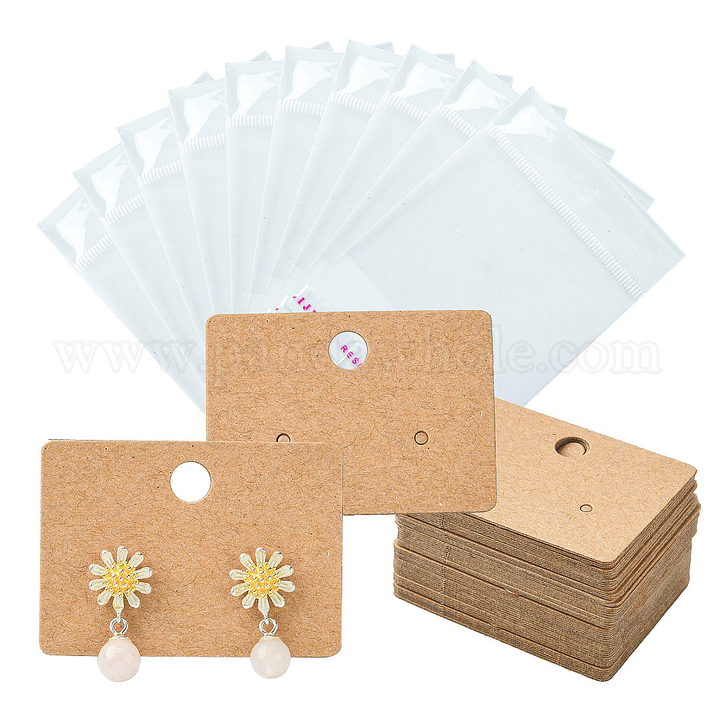 50Шт прямоугольная карта для сережек из крафт-бумаги с отверстием для подвешивания, для одной пары сережек, с 50 целлофановыми пакетами OPP (02HB5K)