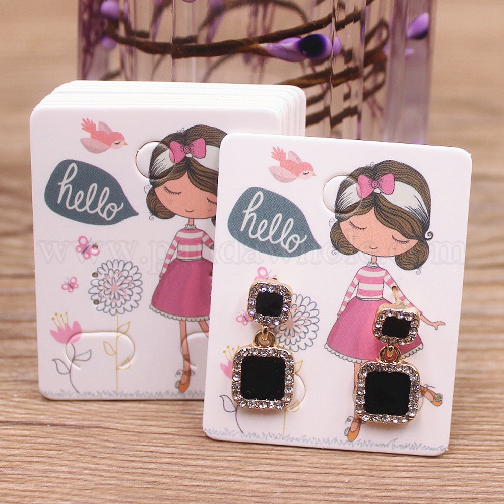 Прямоугольная бумажная серьга с отверстием для подвешивания, карты для демонстрации ювелирных изделий для демонстрации сережек, музыкальные инструменты/девушка/сердце/треугольник/цветочный узор