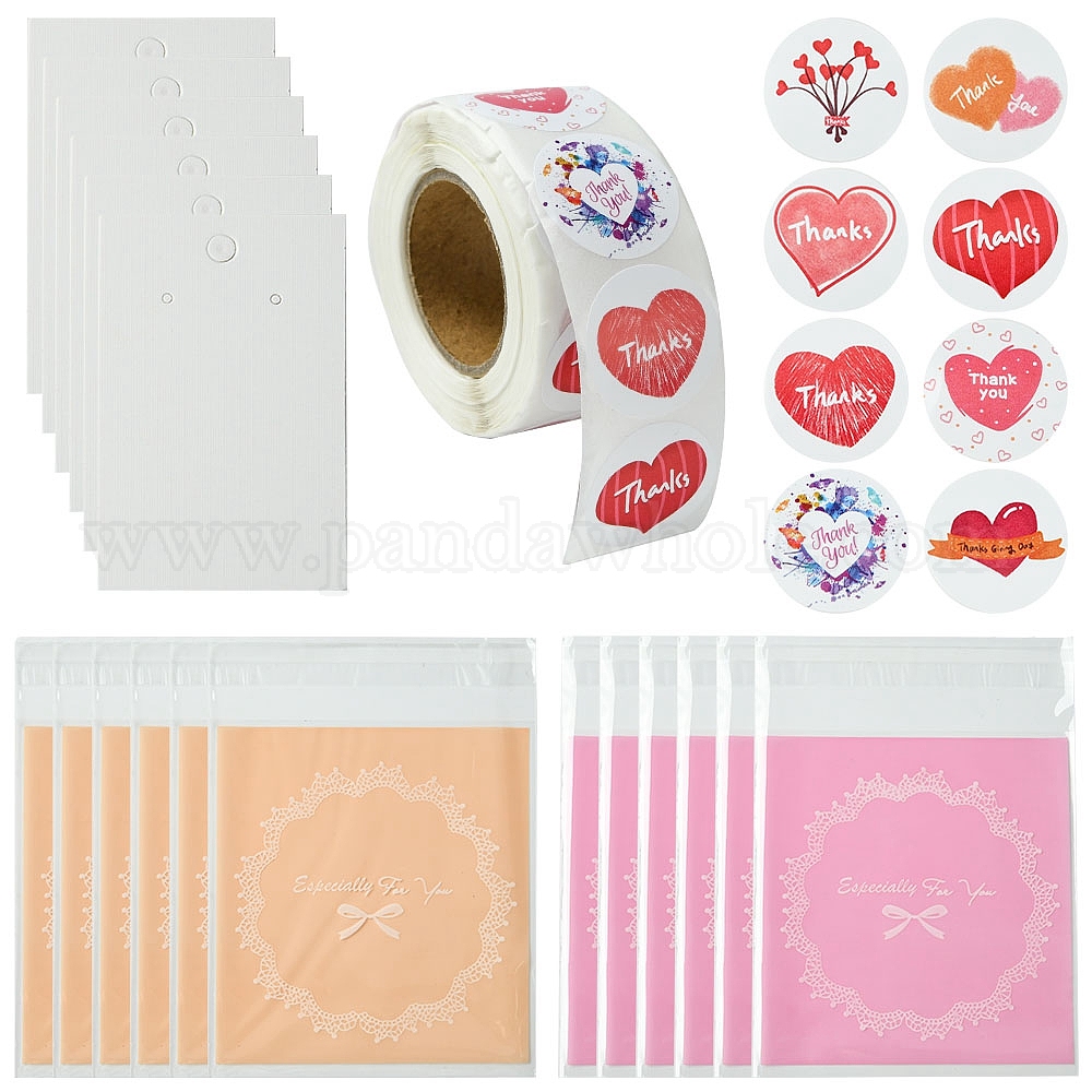 200карточка для демонстрации бумажных сережек, с 2 пакетами 2 цветными целлофановыми пакетами OPP и самоклеящимися бумажными наклейками в форме сердца