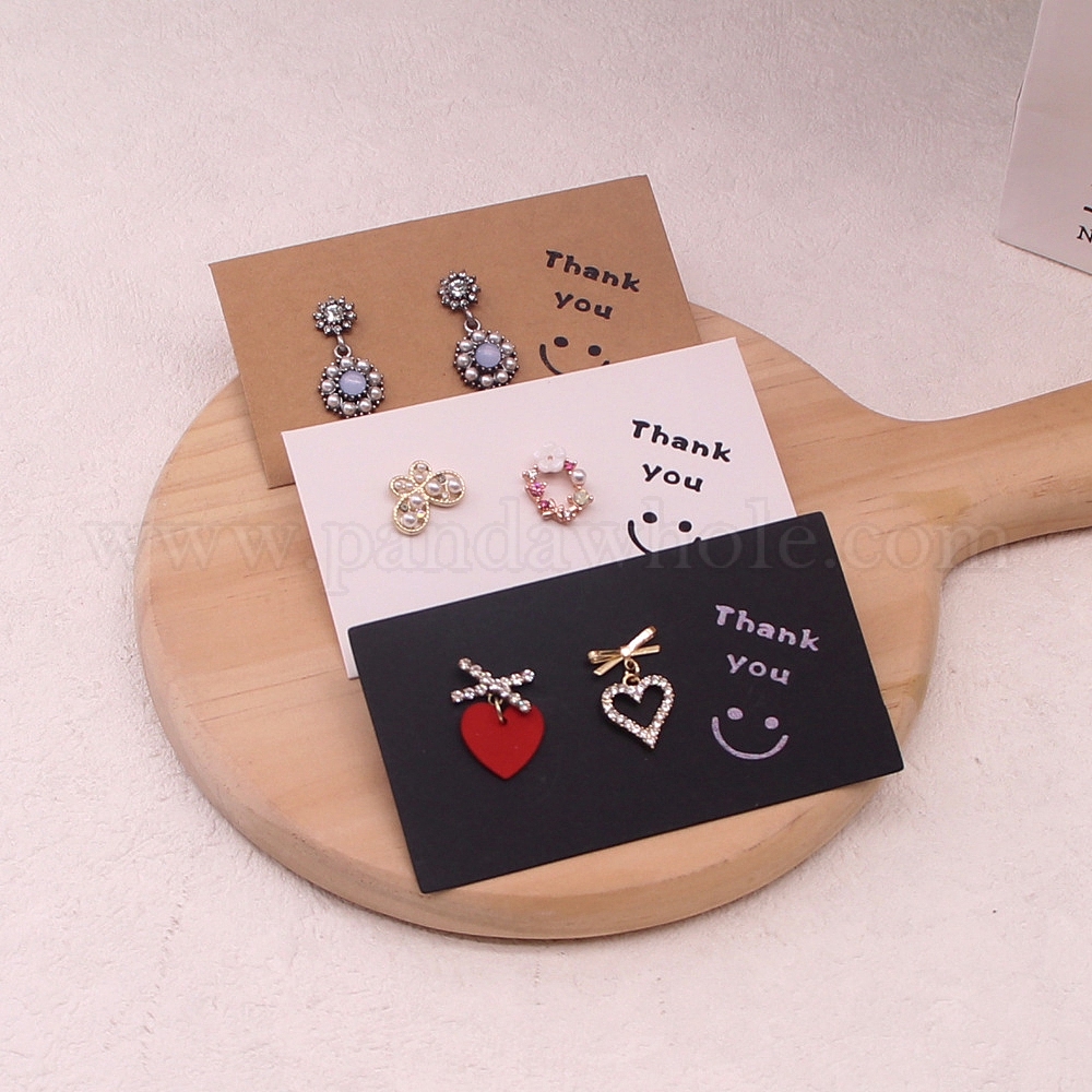 • Черный Бумажные карты дисплея серьги, прямоугольник с рисунком улыбающегося лица, чёрные, 5x9 см, 100 шт / комплект