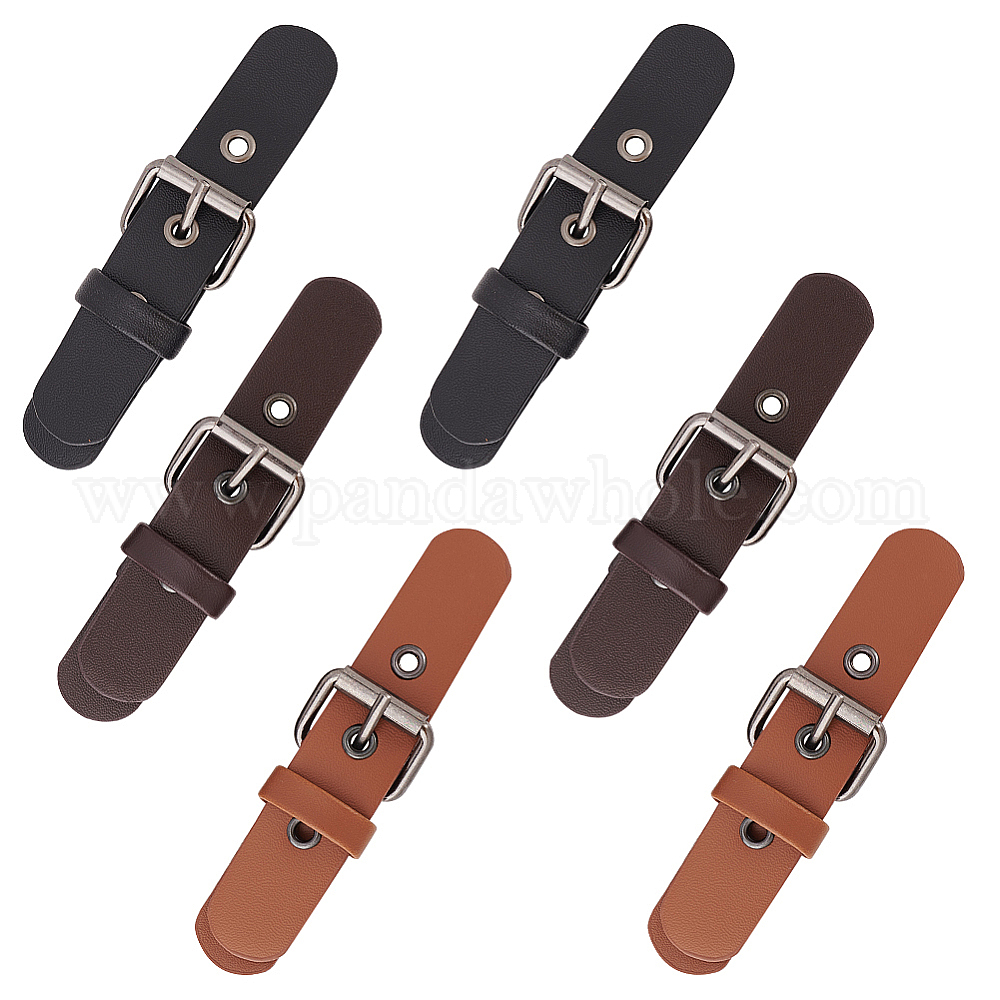 6 наборы 3 цвета искусственная кожа pu пришитые пряжки-тоглы, закрытие вкладок, застежки на плаще, с железными роликовыми пряжками