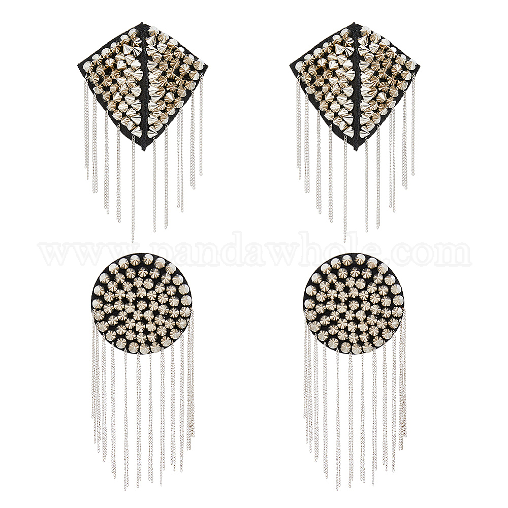 4шт 2 стили модные кисточки эполеты, нагрудный знак с заклепками, с железными цепочками, Пластиковый, ткань выводы