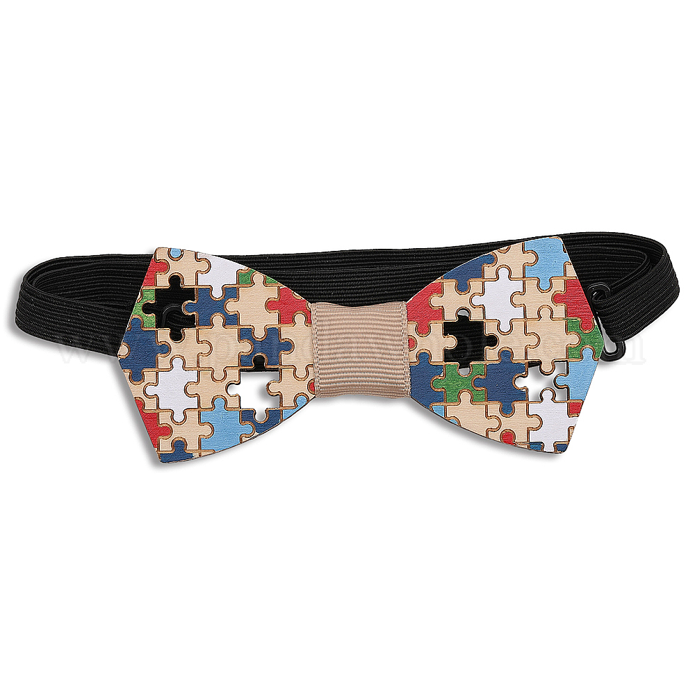 Регулируемые деревянные галстуки-бабочки с узором-пазлом, с полиэфирной лентой