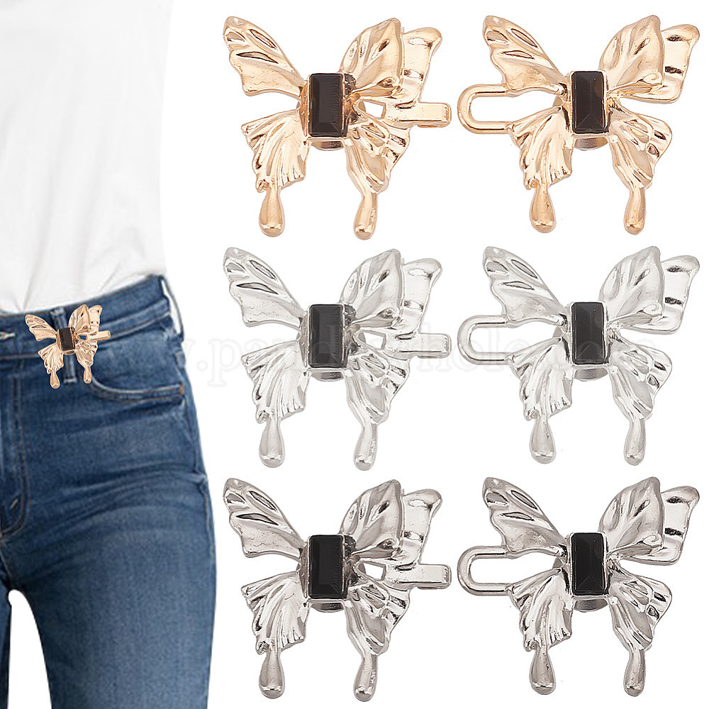 6 шт. 3 цвета бабочка сплав регулируемые джинсовые пуговицы булавки, подтяжка талии, cmолой горный хрусталь, швейные застежки для аксессуаров к одежде
