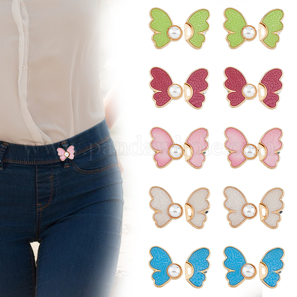 10 шт. 5 цвета бабочка сплав эмаль регулируемые джинсовые пуговицы булавки, подтяжка талии, с имитацией жемчуга, швейные застежки для аксессуаров к одежде