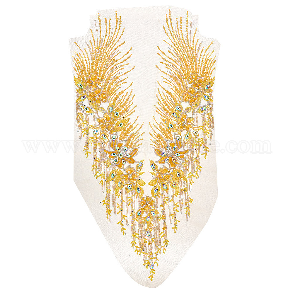Воротник из полиэстерового кружева с цветочной вышивкой и стразами, отделка декольте, аппликация для шитья одежды, с пластиковыми бусинами из искусственного жемчуга