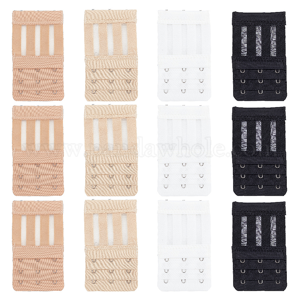 12шт 4 цвета микрофибра 3 ряды x 3 крючки нижнее белье бюстгальтер удлинители, с 201 кольцами и крючками из нержавеющей стали, прямоугольные (02K81J)