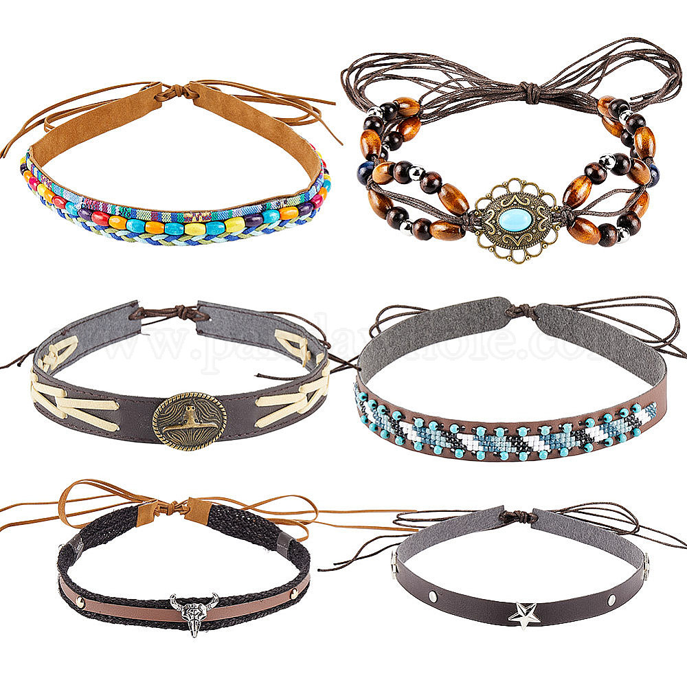 6 шт. 6 стили этнический стиль плоская регулируемая шляпа лента, для ковбойской шляпы, шляпа-федора с загнутыми полями, украшение соломенной шляпы