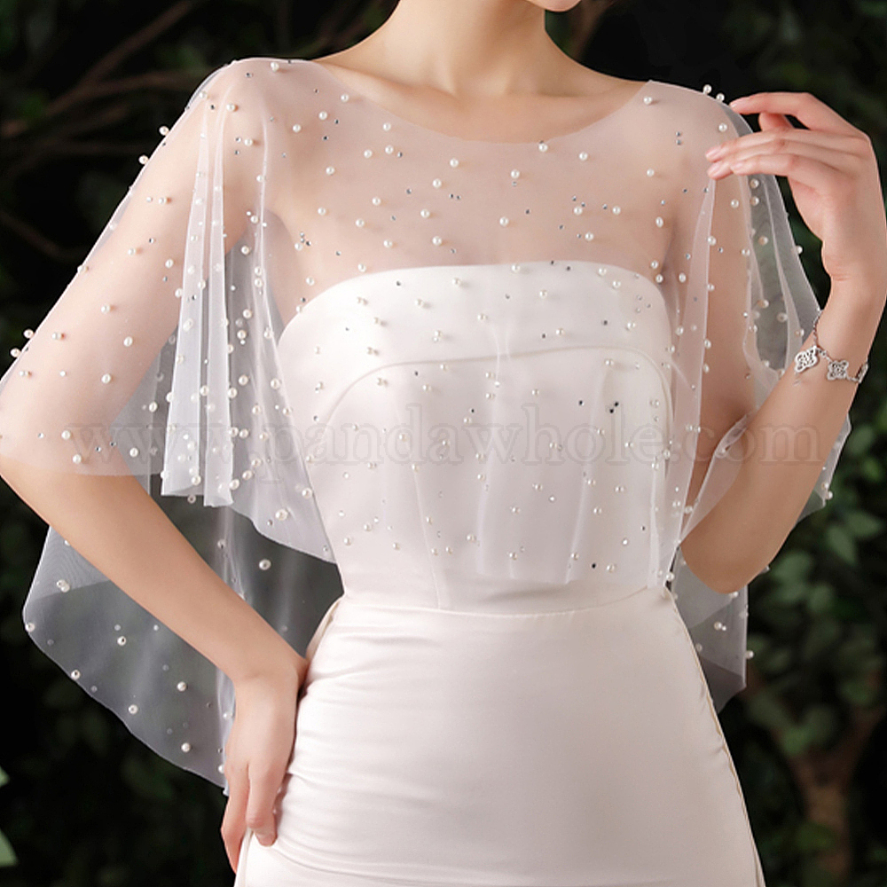 Женские тюлевые воротники, свадебная шаль, с искусственным жемчугом и стразами