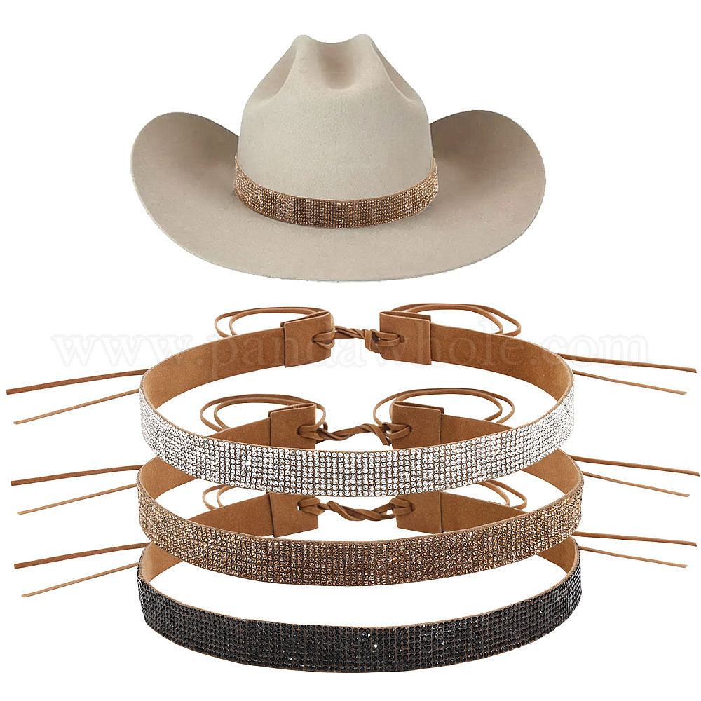3шт 3 цвета бархатная регулируемая повязка на шляпу, со стразами, для ковбойской шляпы, шляпа-федора с загнутыми полями, украшение соломенной шляпы