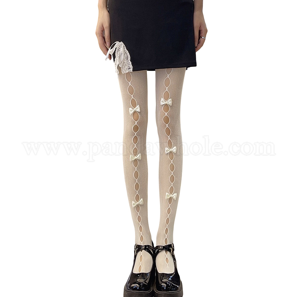 • Белый Нейлоновые колготки в сеточку с бантом, сетчатые чулки для женщин, белые, 716x288.5x3 мм