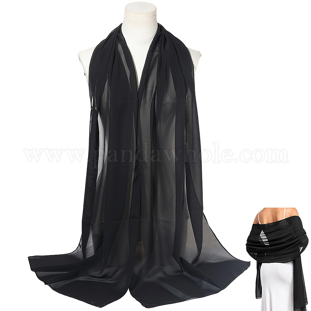 • Черный Шифоновая шаль для женщин, прямоугольные, чёрные, 1900x450x0.5 мм