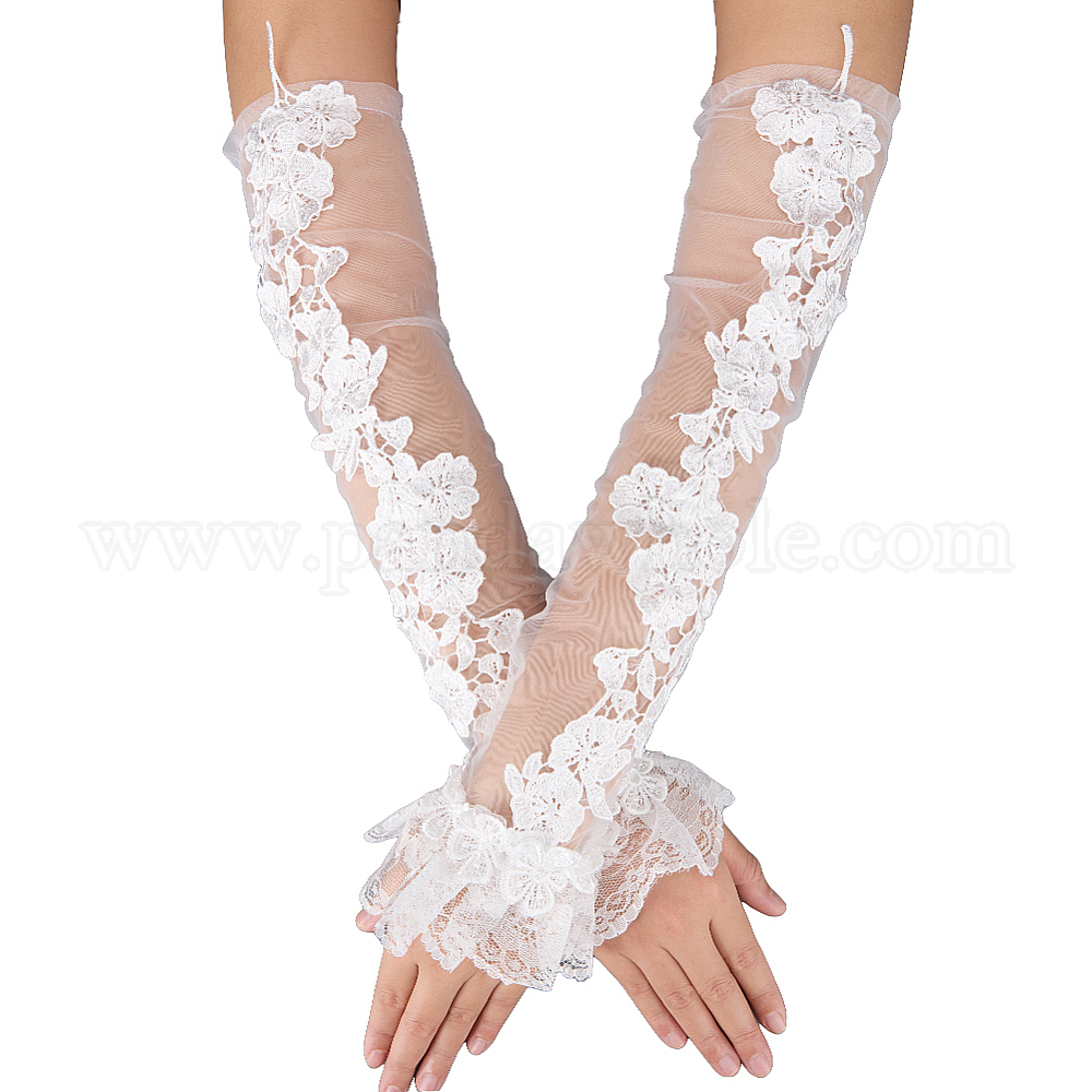 1 пара длинных перчаток без пальцев из полиэстерового кружева с цветочным узором, для свадебных принадлежностей невесты