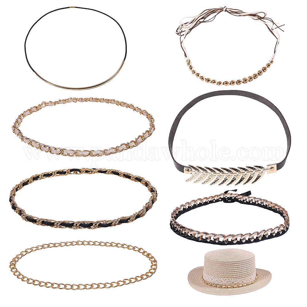7 шт. 7 стили цепочка для шляп из искусственной кожи и акрила, для ковбойской шляпы, шляпа-федора с загнутыми полями, украшение соломенной шляпы
