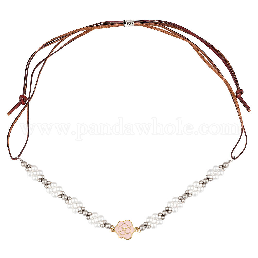 Искусственная кожа шнуры цепи для бейсболок, с подвесками из стеклянного жемчуга и сплава, цветок (034B4Y)