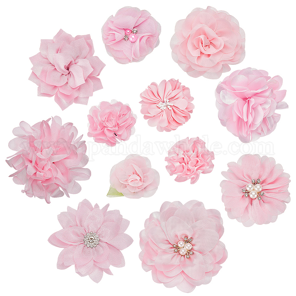 • Pink 12 шт. полиэстеровых украшений, цветок, розовые, 47~90x9~31 мм