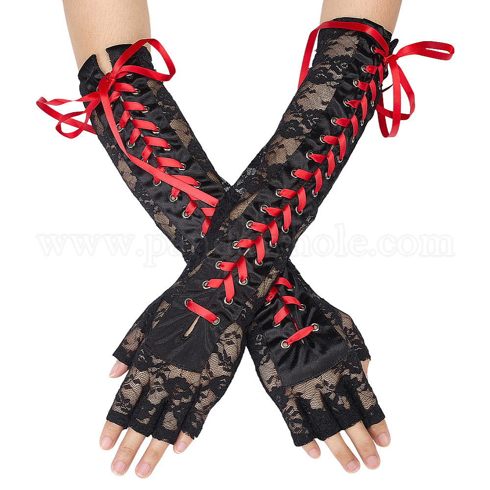 Длинные кружевные перчатки из полиэстера