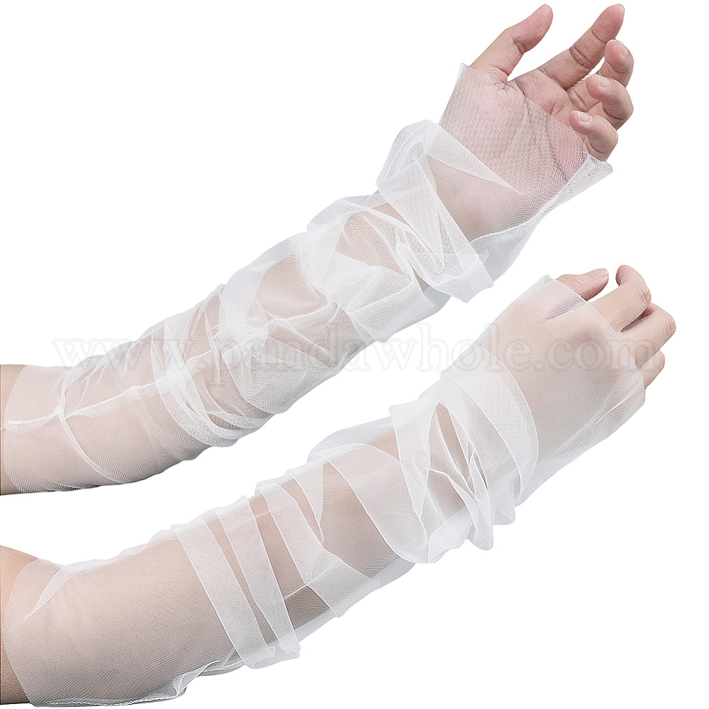• Белый Длинные свадебные рукава без пальцев из полиэстера, белые, 750x125x0.2 мм