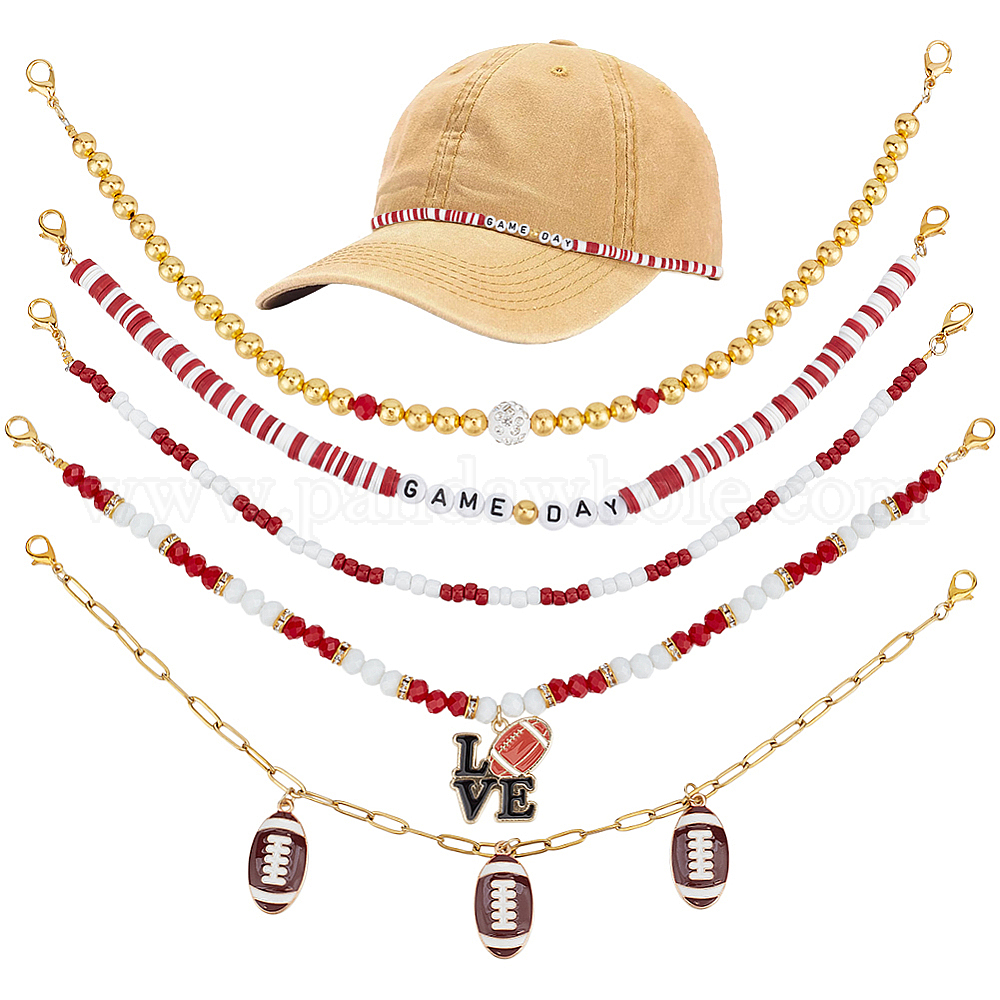 5 шт. 5 стили регбийная тематика, сплав эмали и акрила и полимерная глина ручной работы и 304 цепочки для шляп из нержавеющей стали, Сплав с застежками когтя омара, золотые (037F9T)