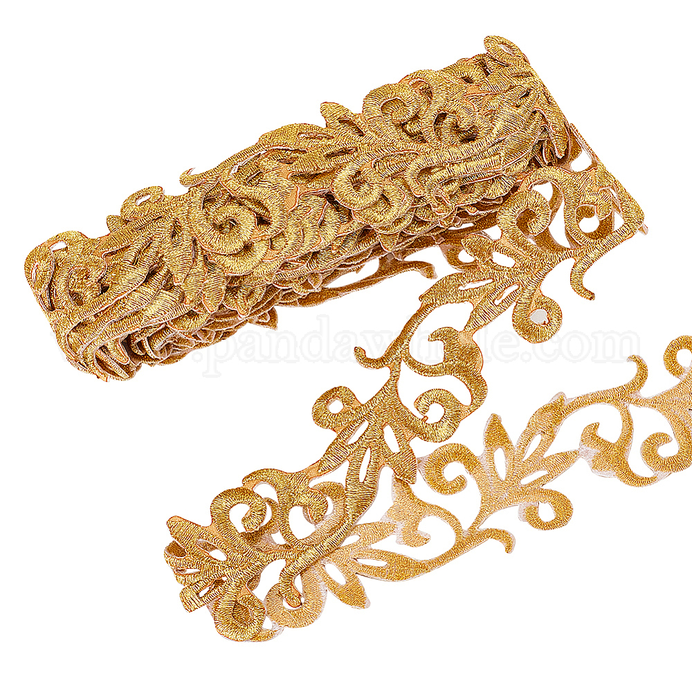 • (932FM) Темно-синий аква-матовый с подкладкой Компьютеризированная цветочная вышивка утюгом/пришивка заплатки из полиэфирной ленты, аксессуары для костюма, темно-золотистые, 2-1/4 дюйм (58 мм), около 4.37 ярдов (4 м) / шт