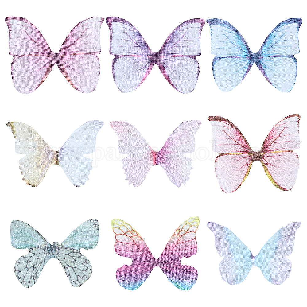 180 шт 9 стиль двухцветный полиэстер ткань крылья ремесла украшения, для поделок ювелирные изделия серьги ожерелье заколка для волос украшение, бабочка (02FKN5)