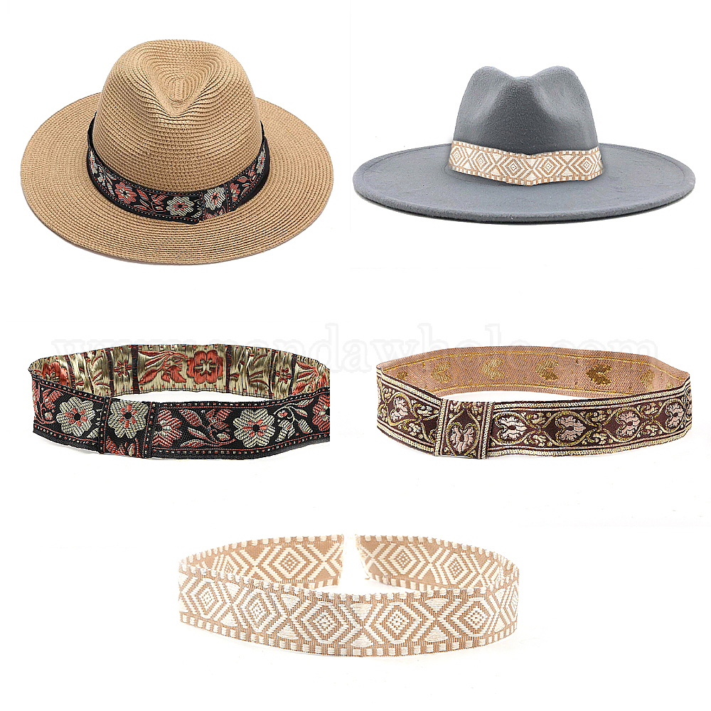 3 шт 3 стиль цветок/ромб/цветочный узор полиэстер тканый пояс украшения аксессуары, для костюма, ковбойской шляпе, шляпа федора с загнутыми полями