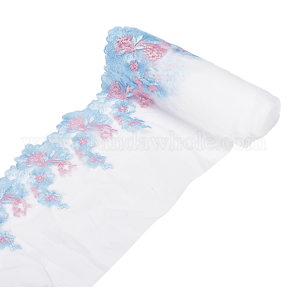 • Светло-Голубой Цветочный узор, полиэстер, вышитый орнамент, аксессуары, кружевная отделка органзой, швейные украшения, Небесно-голубой, 200x1 мм, около 5 ярдов/шт.