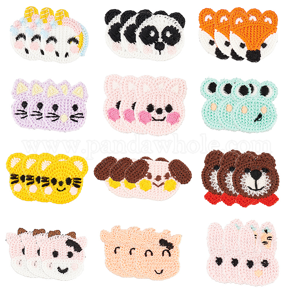 • Смешанные Узоры 36 шт. 12 трикотажные аппликации из полиэстера в стиле животных, костюм шляпа сумка украшение аксессуары, мышь/корова/кролик/лягушка/единорог/лиса/панда/медведь/корова/собака, смешанные узоры, 28~42.5x27.5~46x2~3 мм, 3 шт / стиль