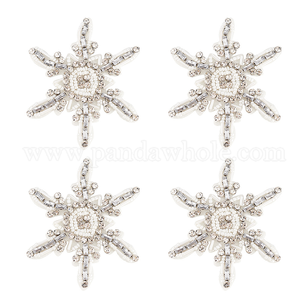 4 стеклянные аппликации со стразами в виде снежинок, аппликации из бисера ручной работы из ткани, костюм шляпа сумка украшение аксессуары