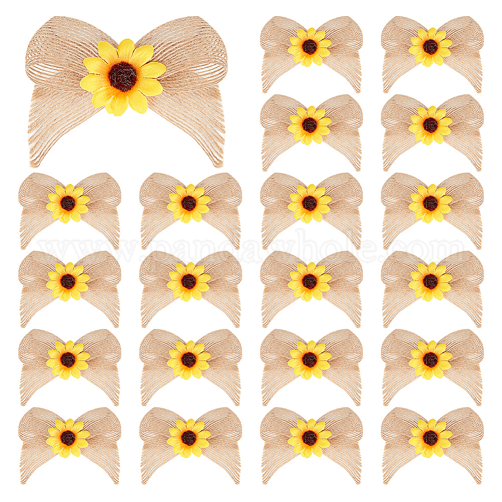 Льняные банты украшения аксессуары, с искусственным подсолнухом